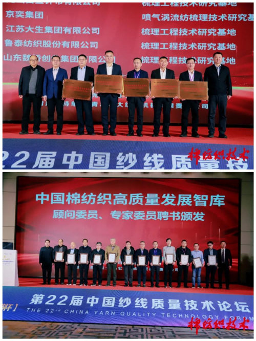 在本次論壇開幕式現場,還進行了中國棉紡織高質量發展智庫梳理工程技術研究基地授牌儀式、智庫專家聘書頒發以及“白鯊”中國紗線質量技術征文頒獎典禮等活動。為推進行業技術研發創新與新技術應用,打造產學研用深度融合的創新平臺,為行業高質量發展提供平臺和技術支持。